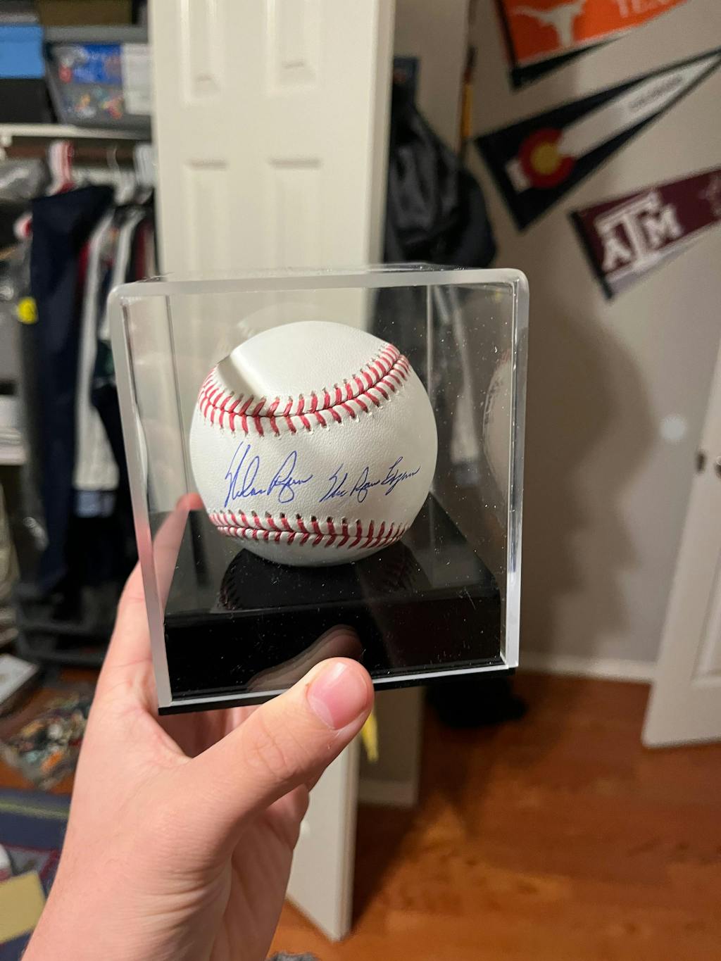 Autographed memorabilia items include a Nolan Ryan autograph and a hologram sticker serving as the certificate of authenticity.